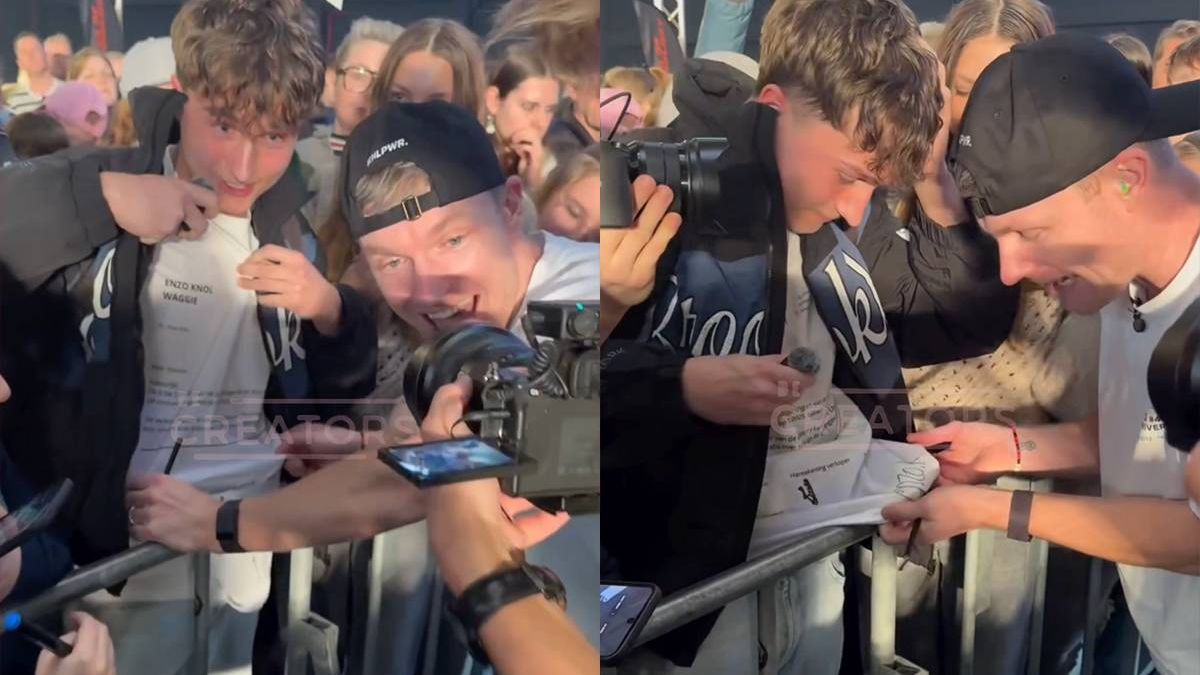 Er stond namelijk een slim knaapje in het publiek die een handtekening van Enzo wilde hebben op zijn shirt. Alleen was dat shirt eigenlijk een contract dat deze Belgische YouTuber Sauro de Lamborghini van Enzo zou krijgen. Knol had het op tijd door en dus geen Lamborghini en handtekening voor Sauro. Waarschijnlijk als Enzo had getekend dan heb je nog zoiets als dwaling en bedrog. Wel een goed idee om zo een handtekening te vragen aan Yolanthe of zangeres Sieneke. Via.